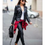 Ako se odlučite za opušten i sakodnevni stil, uz kožne pantalone obucite teksas košulju koju ćete uvući u njih ili ležernu teksas jaknu koja će vam u ovoj kombinaciji dati “opasan” bajkerski stil. Što se tiče obuće, ravne patike kao što su starke, poluduboke kožne ili one sa platformom su savršen izbor. Od aksesoara izaberite neku veću tašnu ili upadljive narukvice ili minđuše.